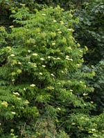 Elderberry's tend grow rapidly. It's not uncommon for a one gallon plant to reach heights of 10-15 feet in a couple of years. On the West Coast they are also surprisingly drought tolerant once established. While Red Elderberry's tend to be found most commonly along shady forest edges and riparian environments, the Blue Elderberry is most often found inland/ upland growing on cliffs, hills, roadsides, and sunny forest edges. Blue Elderberry can tolerate regular garden water as long as the soil is well draining, but it doesn't require it once established. Blue Elderberry can reach 10-30 ft in height x 10-30 ft wide in its maturity, and makes a wonderful shade tree for small yards. Elderberries take pruning very well, making them an excellent option for smaller spaces.