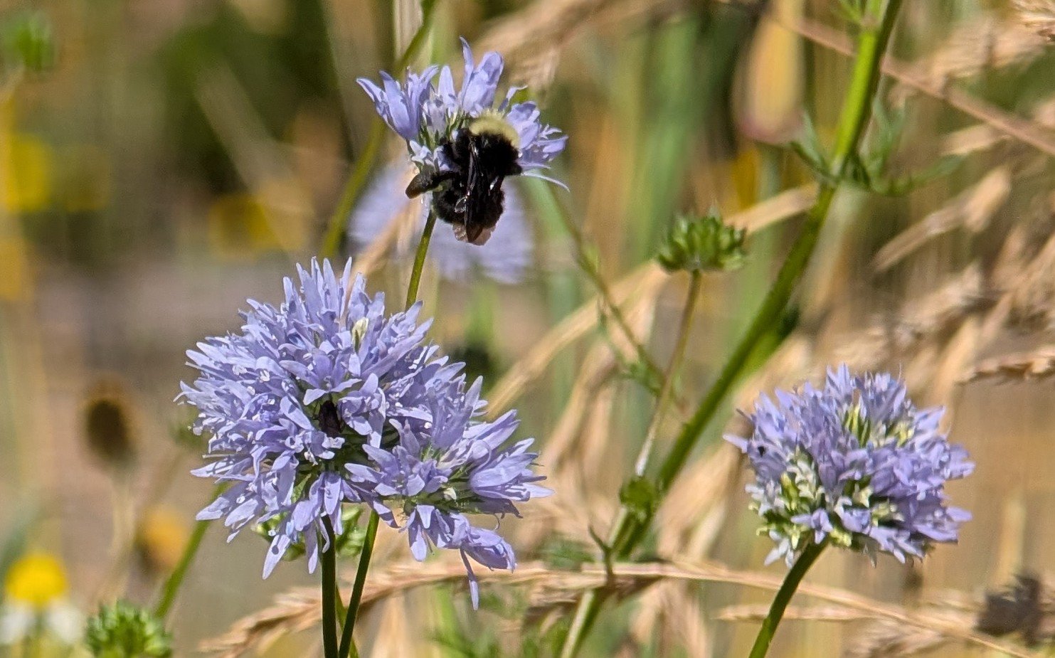 Globe Gilia is another gorgeous little native annual. This charming little blue puff ball flower is loved by native bees, butterflies and predatory flies! It is very drought tolerant once established. If started from seed in the Fall or early Spring to take advantage of our rainy season you'll never have to water it, though with a few deep soaks through the Summer Globe Gilia will reward you with a bigger and longer flower show. It grows best in full sun, but can tolerate part shade. Globe Gilia thrives in many soil types including gravel, sand, clay, and poor nutrient depleted soils as long the soil has some drainage. Flowering generally begins in late Spring and continues through mid to late Summer. It pairs nicely with Elegant Tarweed, California Poppies, Clarkia, and Willamette Valley Gumweed, which all flower at the same time!