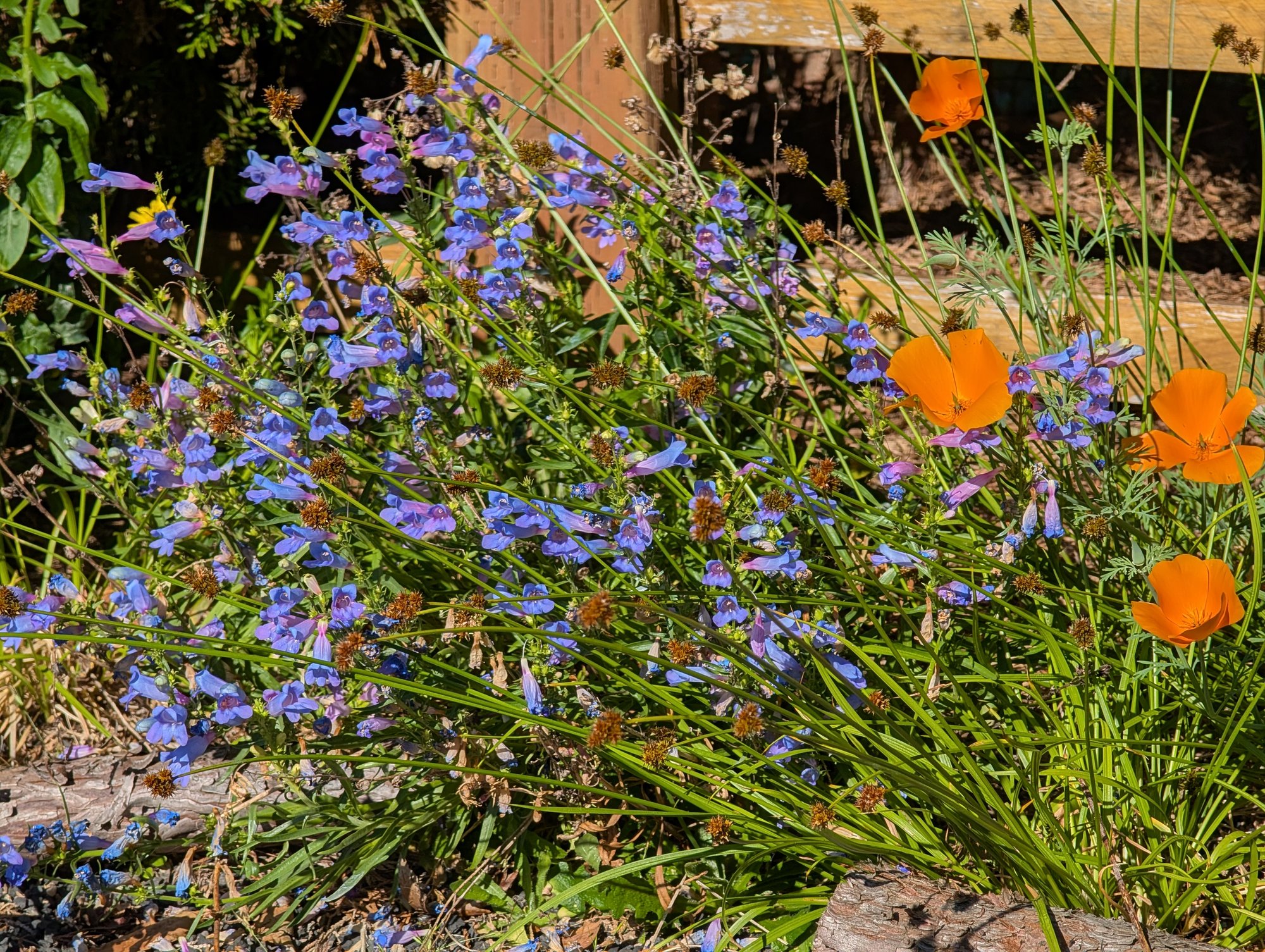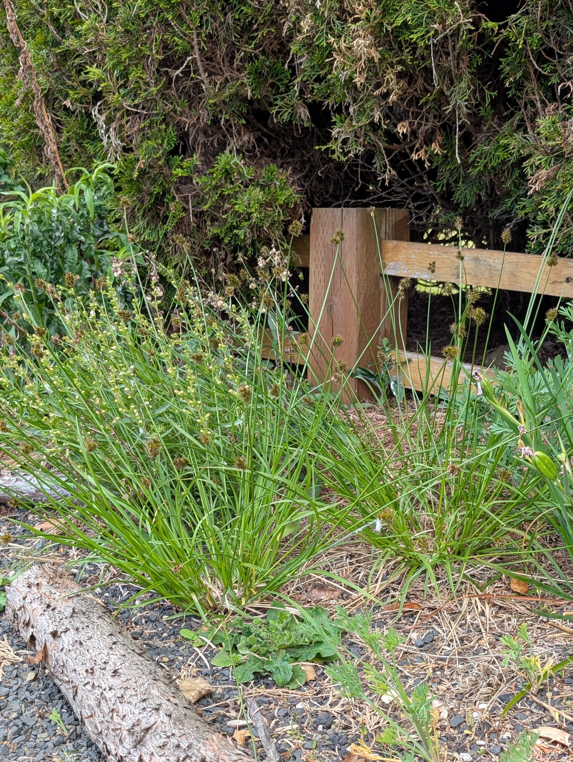 Chamisso Sedge is an adorable little clumping sedge for inland gardens! Unlike most native Sedges that prefer wet/ moist sites, this little gem can tolerate both wet and dry sites! Native to the West Coast, Chamisso can be found growing from Alaska South into California. It can tolerate a wide range of growing conditions - wet-dry, full sun-part shade, and a wide range of soil types including clay. They are evergreen - semi-evergreen. Chamisso generally forms little 10 inch x 10 inch round clumps with the cutest wiry, curly-cue fronds! They are dense enough to shade out weed competition, but open enough to allow wildflowers to grow around/between them. They make excellent companions to grow with Oregon Iris, Blue-eyed grass, CA Poppies, Penstemons etc. Chamisso flowers in the Spring sending up adorable little spiky globe shaped awns that develop a brown or coppery with a metallic sheen as they mature!