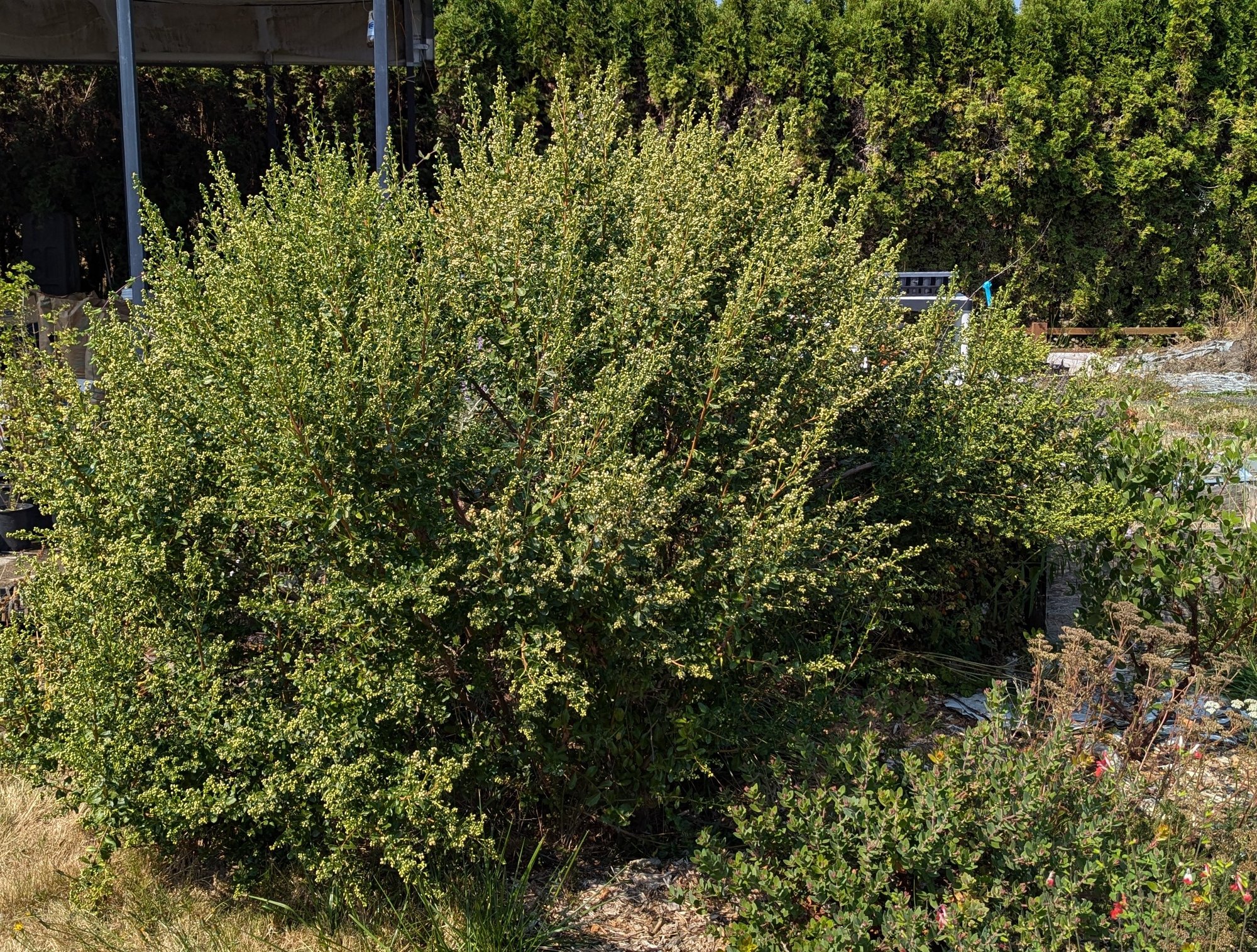 Coyote Bush is one of my favorite native plants. It's evergreen, big (6-15 feet high and 6-8 feet wide), and flowers late Summer- Fall. They make excellent fast growing hedge plants, and will accept pruning very well (which can stimulate new growth). It is veeery popular with pollinators. When this bush flowers you see all of the bugs - bees, beetles, butterflies, moths, flies, wasps, etc. It's very popular with song birds as well! Song birds love to hide in the dense cover of Coyote Bush, and because it attracts a ridiculous number of insects it is also an excellent source of natural bird food. This wonderful bush is deer resistant, fire resistant, flood resistant (mine survived 3wks of standing water), and highly drought resistant. Plant your seedlings in the fall and let nature's winter rains do the rest.