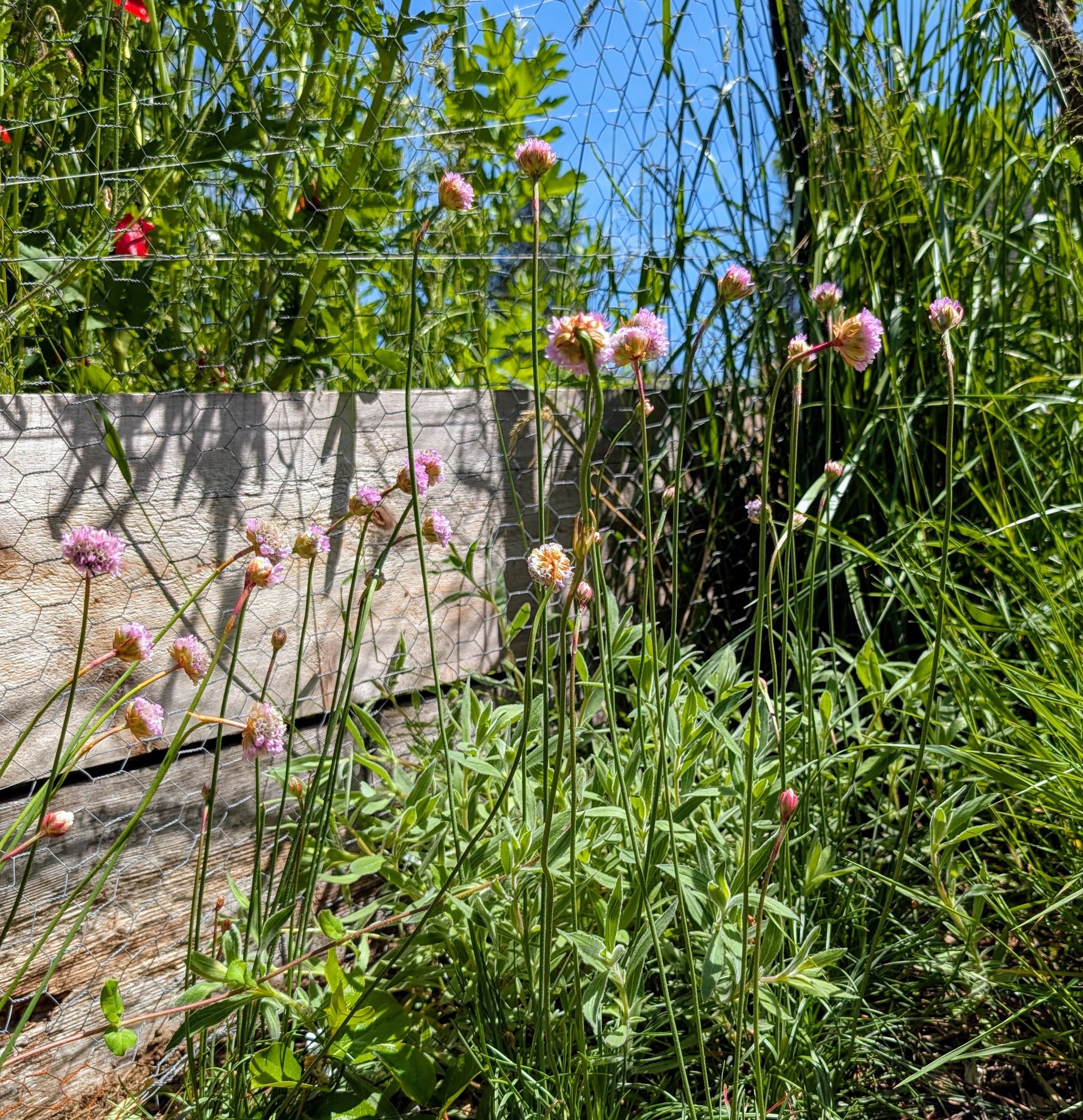 Sea Thrift plants are adorable, with their short grass clump appearance and their pink puff ball flowers! Such a cute ground cover! Sea Thrift can be found growing west of the Cascades, commonly along coastal seashores, rocky bluffs, and in well draining clay soil. This adaptation makes Sea Thrift a great choice for rock gardens, xeriscaping, or any well draining sunny location. Sea Thrift is very salt tolerant and deer resistant! They are accustomed to receiving light moisture from ocean spray and will benefit from occasional watering in gardens east of the Coast Range. Further inland, in more arid climates they will require regular irrigation. Sea Thrift does go Summer dormant when very drought stressed, and will wake and grow again with the fall rain. In my NW Oregon garden Sea Thrift tends to be evergreen through the Winter months, staying green even through heavy frost, snow, and even icy weather!